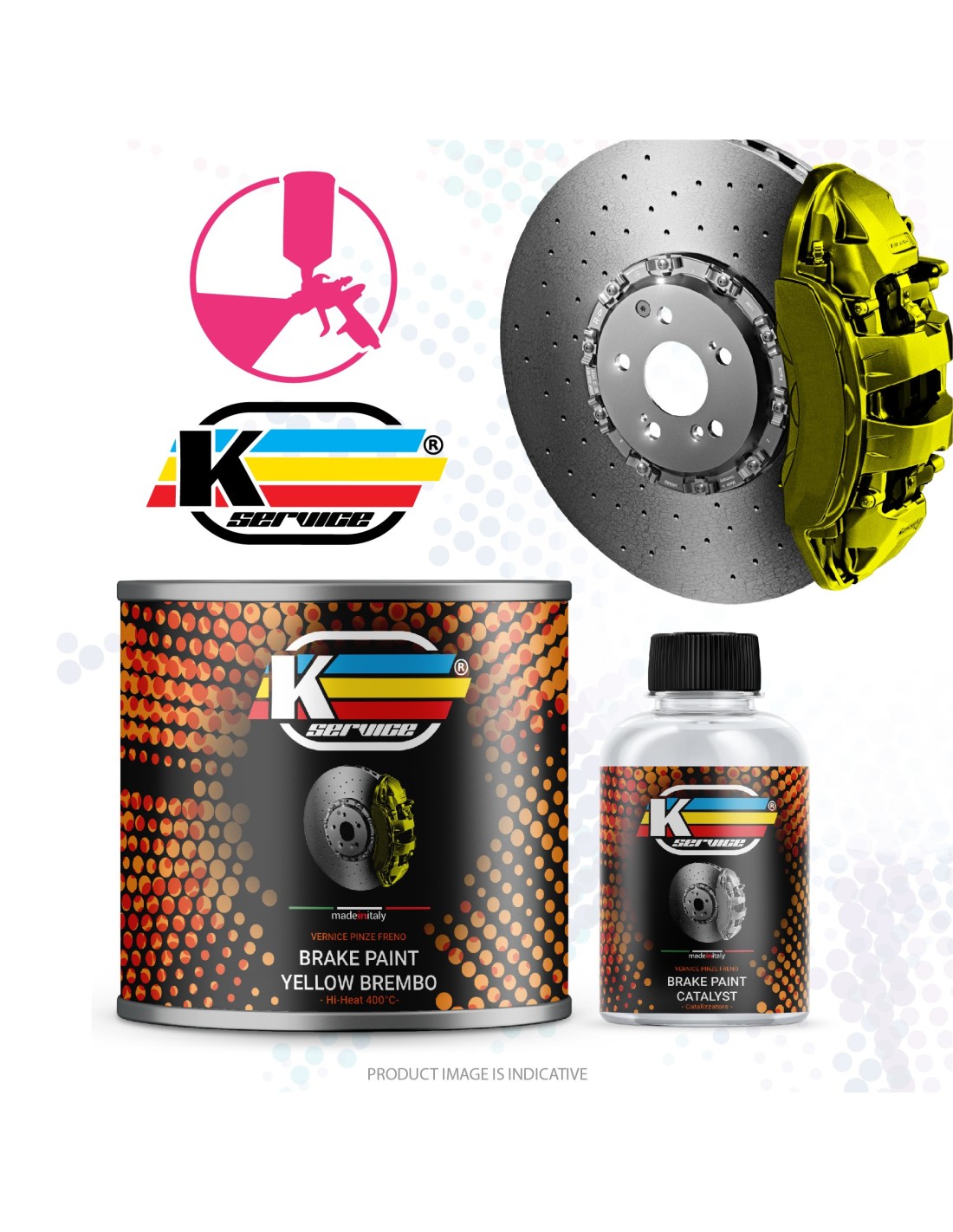Hochtemperatur-Hochtemperatur-Farbe bi Komponente für gelbe Bremszange Modena gilt auch für Gelb Brembo, in einem bereits vordosierten Katalysator-Basis-Kit geliefert.