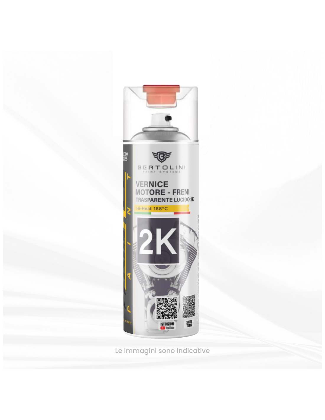 Desengrasar bien las piezas con nuestro desengrasante aeronáutico. No debe quedar rastro de grasa, óxido, imperfecciones ni suciedad de ningún tipo. Es obligatorio usar guantes de látex y nunca tocar las piezas metálicas con las manos desnudas. Preparar las piezas con nuestro primer negro Kustom Service en spray o versión líquida profesional. Antes de aplicar la pintura 2K, se deben aplicar dos manos de primer. Después de aplicarlas, espere de 30 a 60 minutos a temperatura ambiente y luego comience a aplicar la pintura directamente sobre el primer sin lijarlo. Después de aplicar la pintura en spray sobre el motor o los componentes mecánicos, espere 1 hora. Pasada una hora, comience a aplicar directamente la pintura 2K transparente brillante en spray. Este spray, a diferencia del 1K, es 2K. Esto significa que le dará el mismo resultado que la versión líquida, pero con la ventaja de ser en spray. Para usarlo, debe presionar el botón que se encuentra en la parte inferior de la lata. Antes de usar este spray, retire el botón rojo del tapón transparente, voltee el spray boca abajo, coloque el botón rojo en el vástago en el fondo del spray y presione bien durante 30 segundos. El botón activa el catalizador dentro del spray, lo que hará que la pintura se endurezca. Atención: si no realiza este procedimiento, la pintura no se secará y no resistirá ningún tipo de sustancia química. En este punto, agite bien el spray y aplique una primera capa ligera, luego espere 10 minutos. Después de 10 minutos, aplique una capa completa y espere 15 minutos. Aplique una segunda y última capa completa y espere los tiempos técnicos de 48 horas para poder montar las piezas. Tenga en cuenta que este transparente resiste la temperatura de los motores, pero no se debe aplicar en los escapes.
