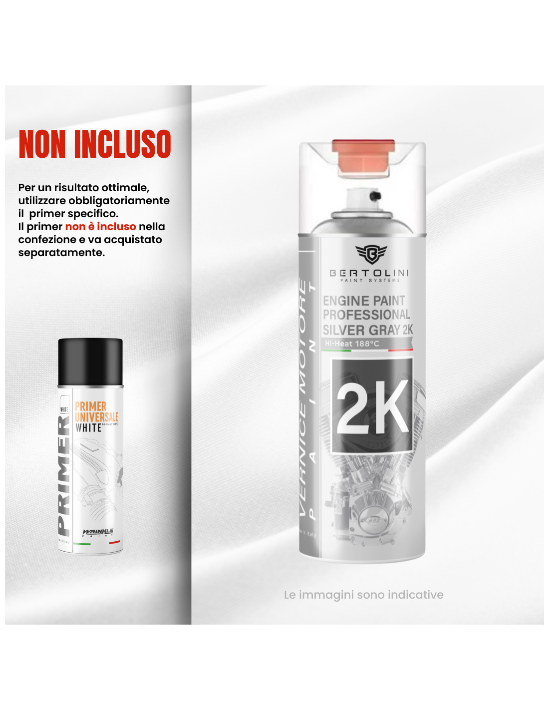 - Preparare obbligatoriamente il metallo con i nostri primer per alte temperature.